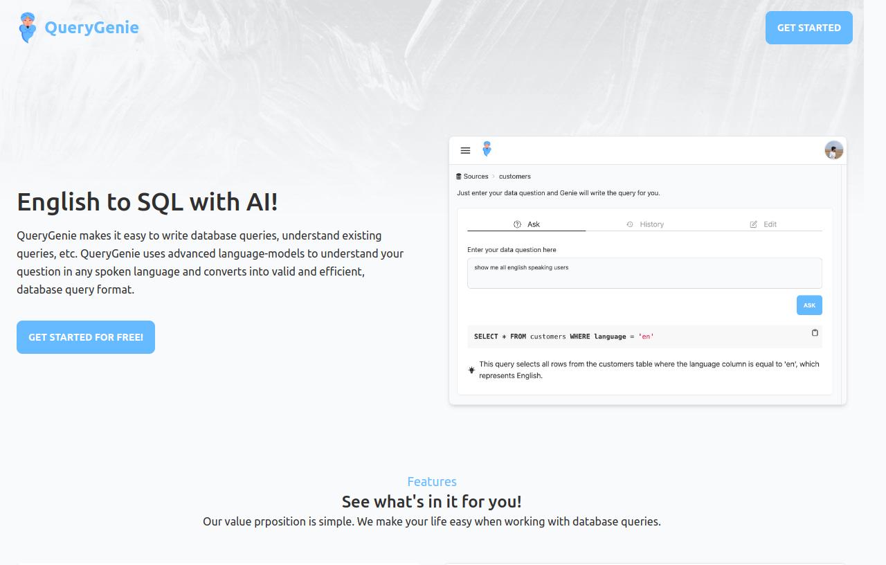 QueryGenie is an AI-powered tool designed to simplify the process of writing and understanding database queries. It utilizes advanced language models to interpret questions in various spoken languages and convert them into valid and efficient database query formats.